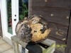 Here is the 229 bushel gourd drying outside beside my deck. So far so good. The mould just scrapes off the hard shell.