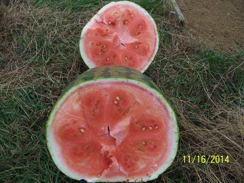 142 kent 14 this was the 291kent X 316 edwards. Picture was taken on nov 16. It had been cut and sitting in the garden since aug 8. It was already frozen once. The plant was a grafted and died, hence the small melon.