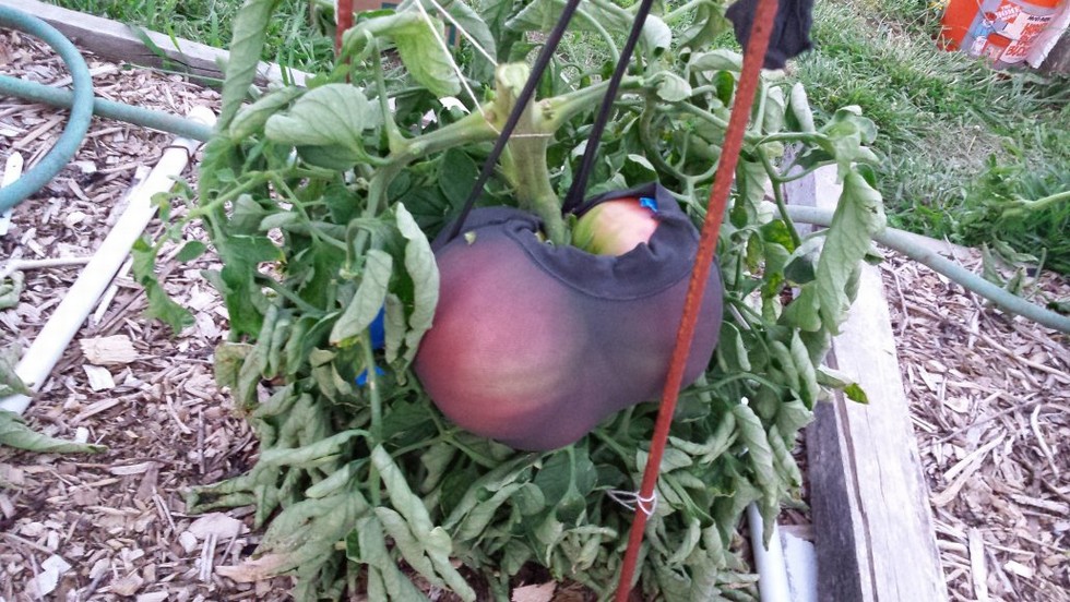 7.10 foss i had just cut the plant in half to get to the tomato. The last 2 weeks of heat ripened most of my tomatoes. Its cooler now, maybe the last ones will grow a little longer.