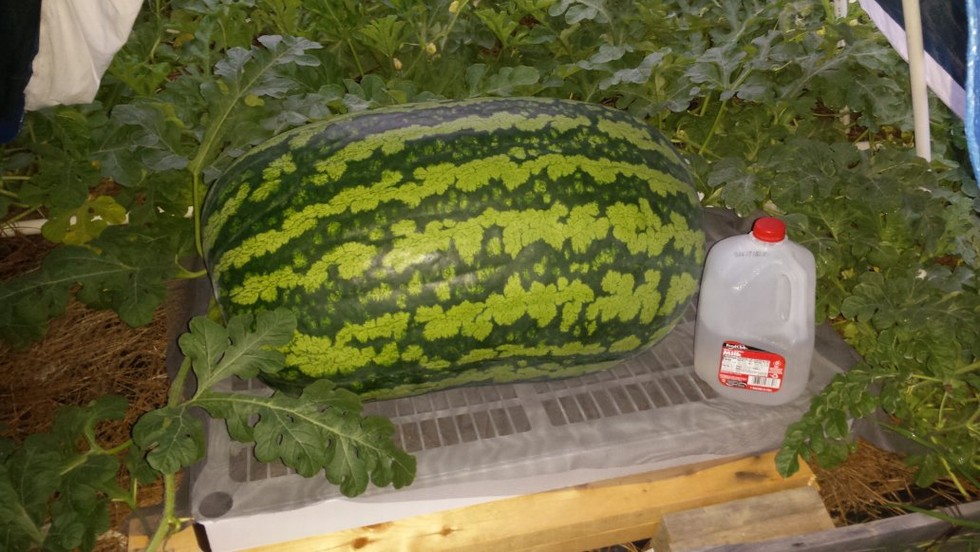 251 kent This melon needs a big H on it for HEAVY ! The best in the patch so far. The gains returned with the sun & the heat. Within spitting distance of the WR pace. I'll use boots for scale next time just for you Spence. I already had the milk jugs.