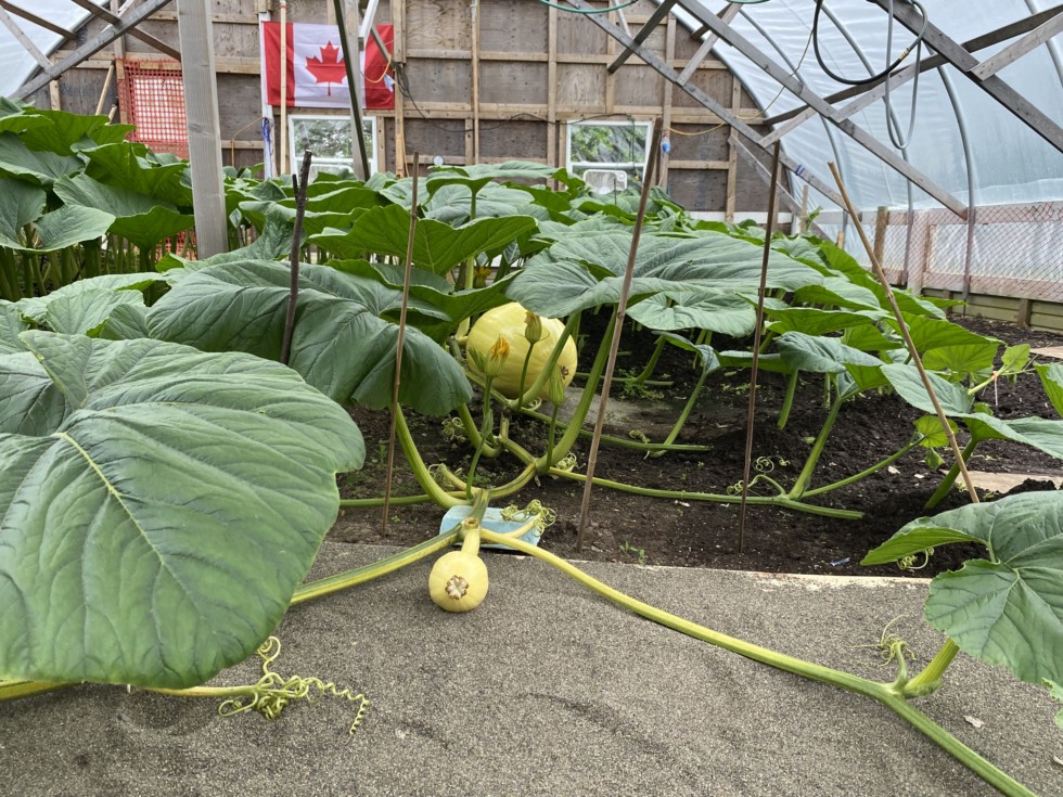 The larger pumpkin is in the process of being cut . It was one week older but the smaller pumpkin is in a much better place for movement later on . If the younger pumpkin aborts I'm done