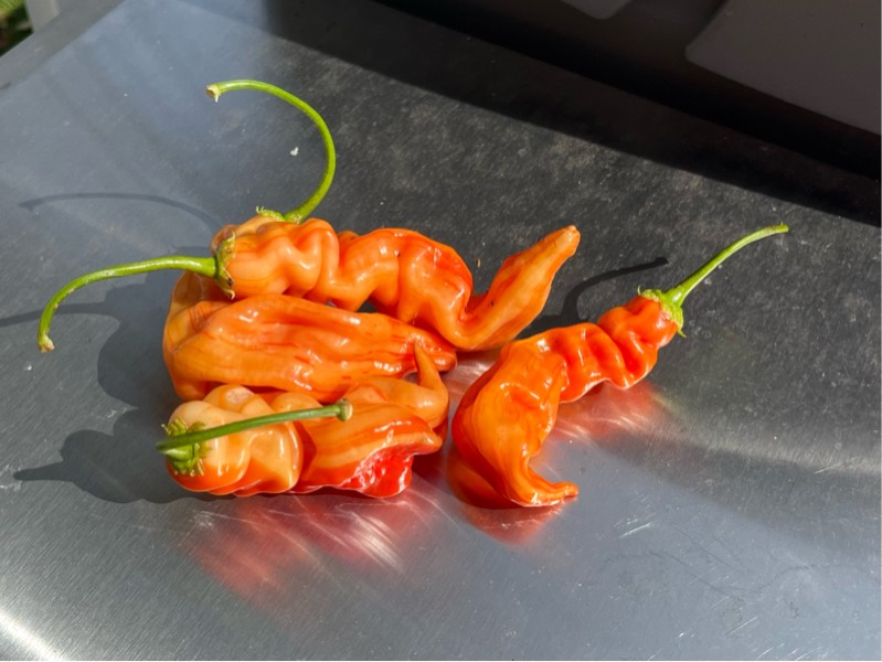 I grew these sugar rush peach hot peppers this year. Going to make some hot gummies for Topsfield with them!