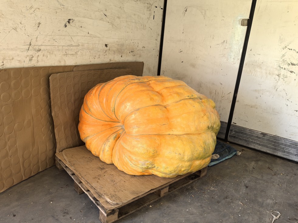 The weight of the pumpkin is 1355 pounds. For the first time in Russia, a weigh-in was held, which was included in the international rating. Many thanks to Alexander Chusov, who was able to organize all this. The weigh-in took place in Moscow, and Pumpkin had to cover more than 4,000 km. Unfortunately, the shape, the huge distance and the quality of some roads led to the fact that the pumpkin was damaged and did not take part in the weighing. But this year, the number of people who are passionate about growing giant vegetables in Russia has increased significantly.
