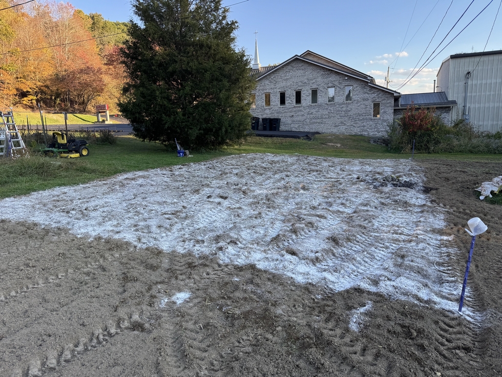 Putting down some lime, gypsum, and boron on one of my patches in this pic.