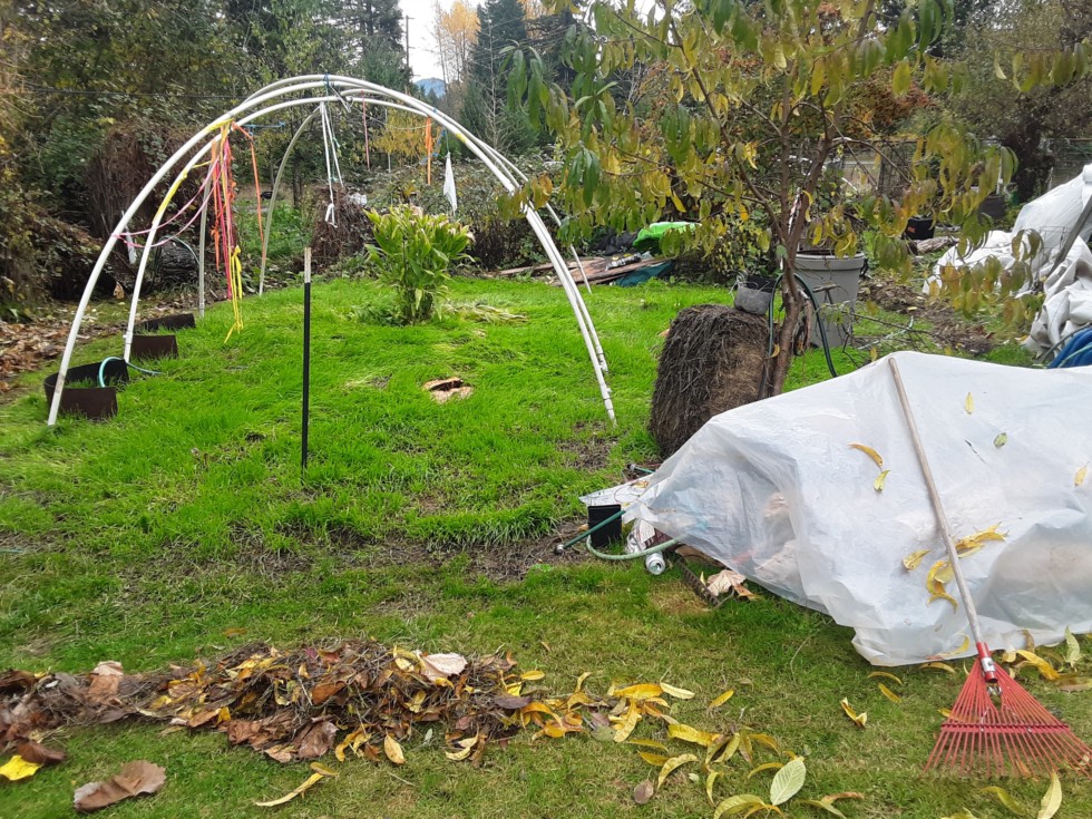 About half the leaves have fallen. I will have to rake the oat/tomato patch one more time. Going for a dense stand of oats here.