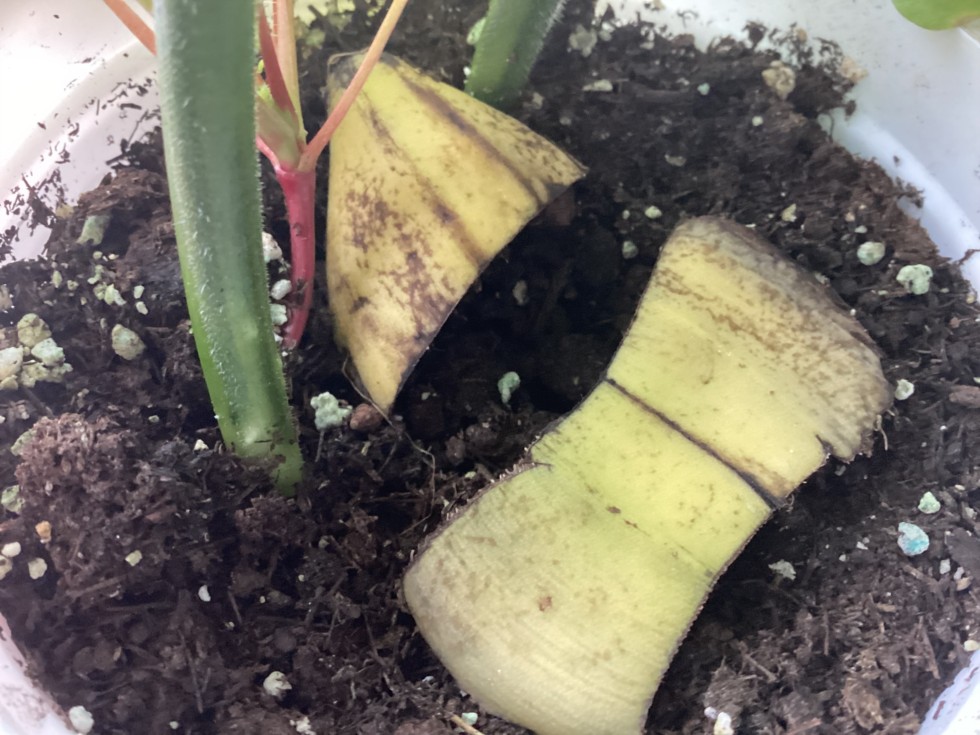 I am putting cut up banana peels in my field pumpkin pots as a slow-release fertilizer.