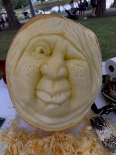 Funny how time gets away from me. This is year 11 for me carving at this same one day family fest in a neighboring town. They raffle the pumpkins to winners so these are only about 65-70 pounders.
