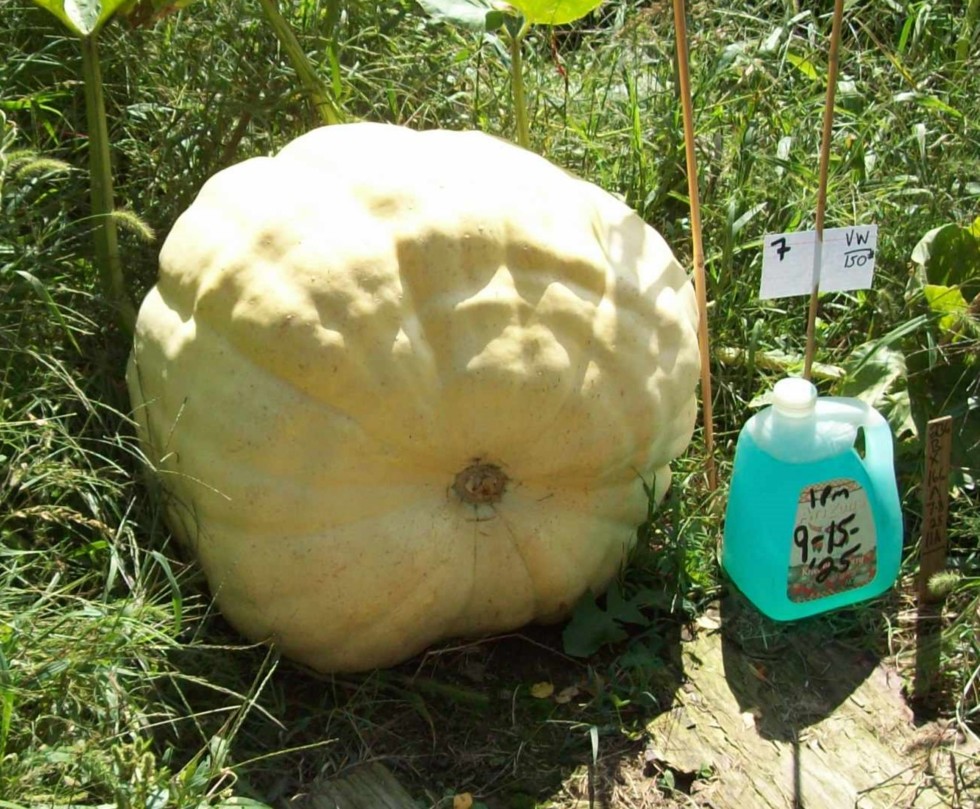 Another 'rock-like' one offa the 236 Gerry '17 (1007 Brown X 2145 McMullen); It started out as a 'white pending' fruit where I thought it was aborting early-on. Nope, and it has been a survivor plant and fruit all along, the result of more-frequent apps of fertilizer and occasional (just) pinching-off of any additional growth resulting. It seems to work MUCH better than whatever I was doing last year, lol. eg ***The final weight was 135.6 (135) pounds.
