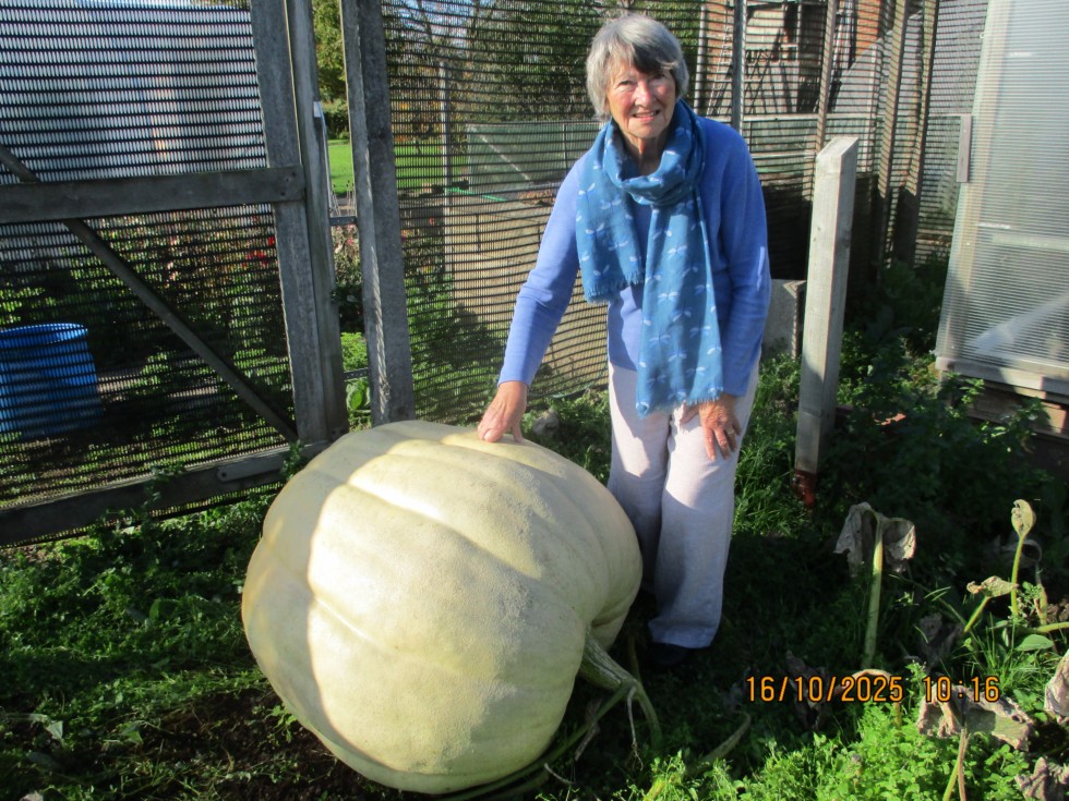 Have grown a Pumpkin this year - not for any show but because I acquired good seed through a seed exchange, considering it had little attention apart from watering during the dry summer I am pleased with it. Taped three ways table suggests 380lbs, it is very deep through.