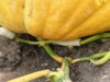 The pumpkin grew stem down. I had to dig a small hole under the stem to control it. But the pumpkin continued to grow towards her.