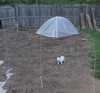 The white square is the 5 ft square base for his hoop house. FlatNorm had to do some fancy math tricks to calculate the area.