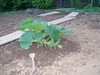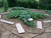823 Rahe pumpkin. Day 15. Est 45lbs. The plant has filled it's allotted area and all but 2 vines have been terminated.
