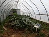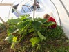 We woke up to -1 on September 9th. Alex's squash at the farm and the long gourd got hit pretty good. I put the cover back on the hoophouse at home and that saved most of the plant. The leaves outside were lost. It's funny, the pepper plants I have in a pot underneath the long gourd were untouched.