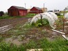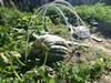 It's another warm one. Here's what's left of the main farm patch. We pulled Andrew's 1177 Crews and my 736 Makarchuk a month ago. We just couldn't get anything to pollinate. Alex and Alanna's squash is to the right under the tarp. There's not much left of his plant. Even before the frost he had no plant before the squash. The vines all stopped growing in June. It is still putting on 1-2 pounds a day.