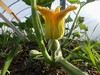 The 993 Vincent was a slower growing plant, so I kept the 1239 Vincent-McGill squash at home. There's a female at 4 feet opening. A bit early still. It's looking good to have a squash to pollinate in about 2 weeks. The squash plants look to be the first to pollinate. Hopefully we can cross the two.