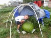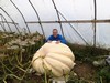 Just a bit wet the past two days. About 3 inches fell yesterday, plus another that fell over the weekend. The farm patch is underwater again. The good news is it is supposed to be warm and sunny in a day or two. Here is Alex's squash.