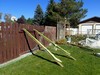I harvested one long gourd two days ago as the forecast was for -6 When I built the trellis, I never thought I could grow a gourd this long. I had to put the board at an angle and this year it got me an extra 28 inches. I think it's time to redo the trellis.