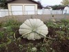 Other side. I wasn't paying attention this year. About September 1st I discovered another squash in the patch. With the dark green colour, leaves and the weeds, I missed this thing. Maybe it's good I have it. The 1236 is thumping pretty good and the skin is starting to split. A bit more growth and I might have had a stem split.