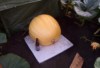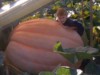 Newly erected statues of Howard Dill and the pumpkin that he made famous. My kids Katherine and Parker standing next to them.