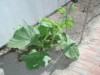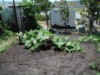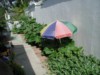 The other half of the sideyard plot - a volunteer watermelon (1 seed).