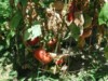 A few pictures from the Orange garden to follow. This is the patch with Dave working on sprinklers, shade cloth all over etc. Ripped out the sugar baby pumpkins - PM. The 719 North Main fruit is visible in the middle of the patch. I need to get shade structures up soon. Adjusted the timer to 20 minutes of water 4x a day (9,11,1 and 4) until this heatwave breaks. Almost everything is deadheaded.