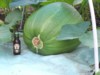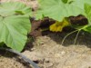 The first casualty of the season, the 116 Lyons Long Gourd. We came home tonight and it was "broken off". I assumed at first it must be wind damage, however upon further inspection we found that it was chewed at the soil surface and upon further inspection Ryan found this little critter. A black cut worm.