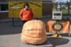 This is Brian's wife Jen, with the fruit off the 943 Vincent-McGill 06. It weighed 788.6 lbs and was 10th place. It was also crossed with the 998 Pukos. This pumpkin was picked two weeks early and had been on display.