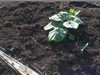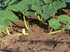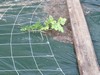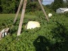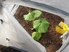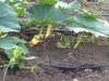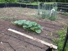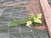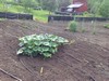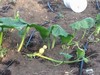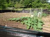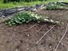 The watermelon plants, a bit tossed around from all the wind this weekend. No fruit signs