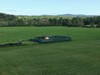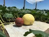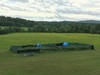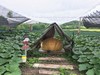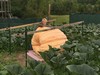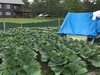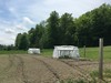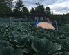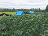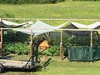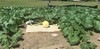 Pumpkins planted in their patch with huts for weather protection. (1,000 sq ft each patch)