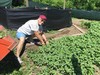 Pulling more weeds in the 1733 Wallace patch. You can see the Wallace plant in the background, vining out nicely. One pollination complete on this plant, but I'm not happy with the position on the vine.