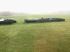 Using the mist blower early morning from the only vantage point that works for me. I always have difficulty getting the tops of the leaves standing on the ground. Seaweed and Epson salts with a little 0-0-25.