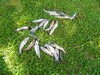 My Wife Lu Ann, daughter Jessica, son Jacob and I got to go trout fishing this morning and we all caught our limits. 12 rainbow and 5 brook "stockers" and 3 wild brown trout. Jacob made a fortunate discovery. He saw little green worms dropping into the water and the trout gobbling them up. We used those worms to catch 12 of our fish, including all of the browns, The browns are very spooky and hard to catch, and we usually get only 1 or 2 in a year. The trout will go on the smoker tomorrow, and the heads and guts will be buried in next year's gourd patch.