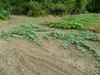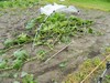 I just got done surveying the storm damage. There are a lot of shredded AG leaves but they should pull through. The only vine damage was a huge split on the 2036 ribbon vine. I will train a secondary to take over, but it looks more like the volunteer will take its place. The long gourds didn't fare as well. I lost the end of the vine on the 137.25 and the 129, and the 123 got a split and kink in the main. The 129 has another growing beside it, and the broken one looks like it may rot off close to the ground from the brown fungus. The Companion seems to be helping as I saw no more infected leaves. The watermelons aren't too bad and the field pumpkins were mostly undamaged. It looks like I won't get any green beans: the rabbits are eating them off. I ran 2 little ones out of the patch. I guess I need to hire Elmer Fudd to come over with his shotgun.