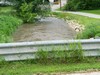 This is what is worrying me. The creek is nearly bank full and the soil is saturated. Radar shows that the developing storm is going to "freight train" over us like the one earlier in the day. This is the bridge about 400' upstream from our patch. I'm sure our neighbors are glad they got the creek bank riprapped last fall. The flood last June nearly took out their driveway.