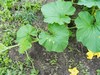 Volunteer that came from last year's Survivor. That one won't give up: survived a flood, mice ate into the pumpkin and it rotted, seed on the ground all winter, planted when I tilled for tomatoes. It came from Joe Scherber's Colorado state record, which grew in the toughest climate around. I just had to let it grow.