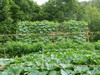 The rust fungus is taking hold on the long gourds, probably because of the wet weather. They got foliar and root drench Companion, and will get more AgriFos and Daconil when today's rains are over. The Glasier ribbon vile is now starting to curl up like a pig's tail. I did more surgery on it, but I think I will be keeping the volunteer from last year's Survivor in its place. It will be a bit of a problem because the stump is right next to a row of tomatoes. The McMullen, Globus, Witter-Benson and Foss pumpkins are doing great. I may be pollinating in just a few days. My 862 is going, but a couple weeks behind. The field pumpkins and Clementz watermelons are also looking good.