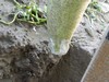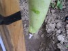 I thought the long gourd was a goner. The tip was shriveling up and had a brown spot on it. But today the tip had filled out and the brown spot was gone. I guess the AgriFos that I gave the plant did its job and stopped the disease from progressing. Just a little over 100" now. You can see how it is stretching the electrical tape, so I need to re-tape it. I guess you should never give up. I should have learned that last year.