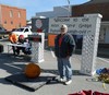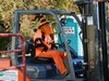 Pumpkin Master John Dirks gest into the spirit and does an excellent job of getting the huge pumpkins safely to the scale.