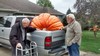 Jacob is guiding the pumpkin as I back the Ranger under it. Loading went well,. A big sigh of relief.