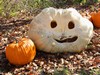 A little late posting photos of our big pumpkins carved for Halloween. This is Jacob's 899 and one of the field pumpkins.