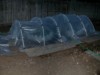 This is what one of my hoop houses looks like. Not very fancy but it works for me. It is about 7 ft x 7ft. It is made of three 10 ft pvc pipes going into 2 ft re-bar. then a 12 ft x 10 ft section of plastic covers the top.