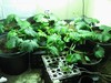 Here is the whole area. Like I mentioned, I am running out of space fast. The greenhouse with the large tables and unlimited space was so much nicer to work in.