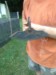 I look rough in this picture after a long hot day working in the garden, but I wanted to show that the "bat hoe" has a long slender handle which makes it easy on the back and easy to manipulate in your hands. So far it appears to be well made, but I've only had it two months, so I can't speak to its durability yet. There are several pumpkin growers in my area, and if any of you want one, they are $19.99 at Lexington Farm and Garden.
