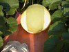 191 Blair finger vine fruit. A fast grower, it looks to be a longer fruit compared to the one on the main vine. Yeah, I know I am a wuss for not culling down to one. I have a real problem with committing I guess. LOL
