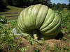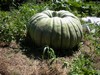 1578 Holub squash. This squash was planted right next to the 1245 Berard. On this one the plant and squash stopped growing in early to mid July. I am not sure why. The tips were stunted and they wilted badly everyday. (sort of resembling YVD.) Yet, It definitely wasn't YVD, It is a mystery to me. It did have a decent pumpkin on a secondary vine that was probably bigger than this one when it was culled. This one is taping about 150 pounds. Once again sorry no patch picture. You couldn't even see any squash leaves in that jungle of weeds.