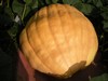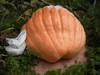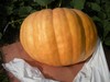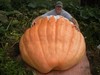 1642 Sperry main vine pumpkin. No growth hormones were used on this, it just grew this way, naturally. The young pumpkin looked O.K., then it grew up. I usually pride myself in growing well shaped pumpkins. Not this year.