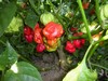 This is what I believe to be a trinidad scorpion plant. A picture of the fruit will be in the next entry. If any hot pepper growers are reading this, please let me know what variety this is. I have almost ripped this plant out a couple of times. I am afraid someone will pick one and unknowingly try to use it. Such a beautiful plant, It has to be almost 3' tall.