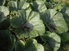A close up shot of an aphid covered leaf.