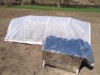 Here is the hot house made of PVC and emergency blanket. It will go over the plant each night to help keep it warm. It makes a big temperature difference with the need for a heat source.