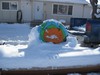 This is my little biddy squash I grew this year. It is the only fruit that made it to a weight off at 418 lbs. Dori my better half painted it to go in our front yard.